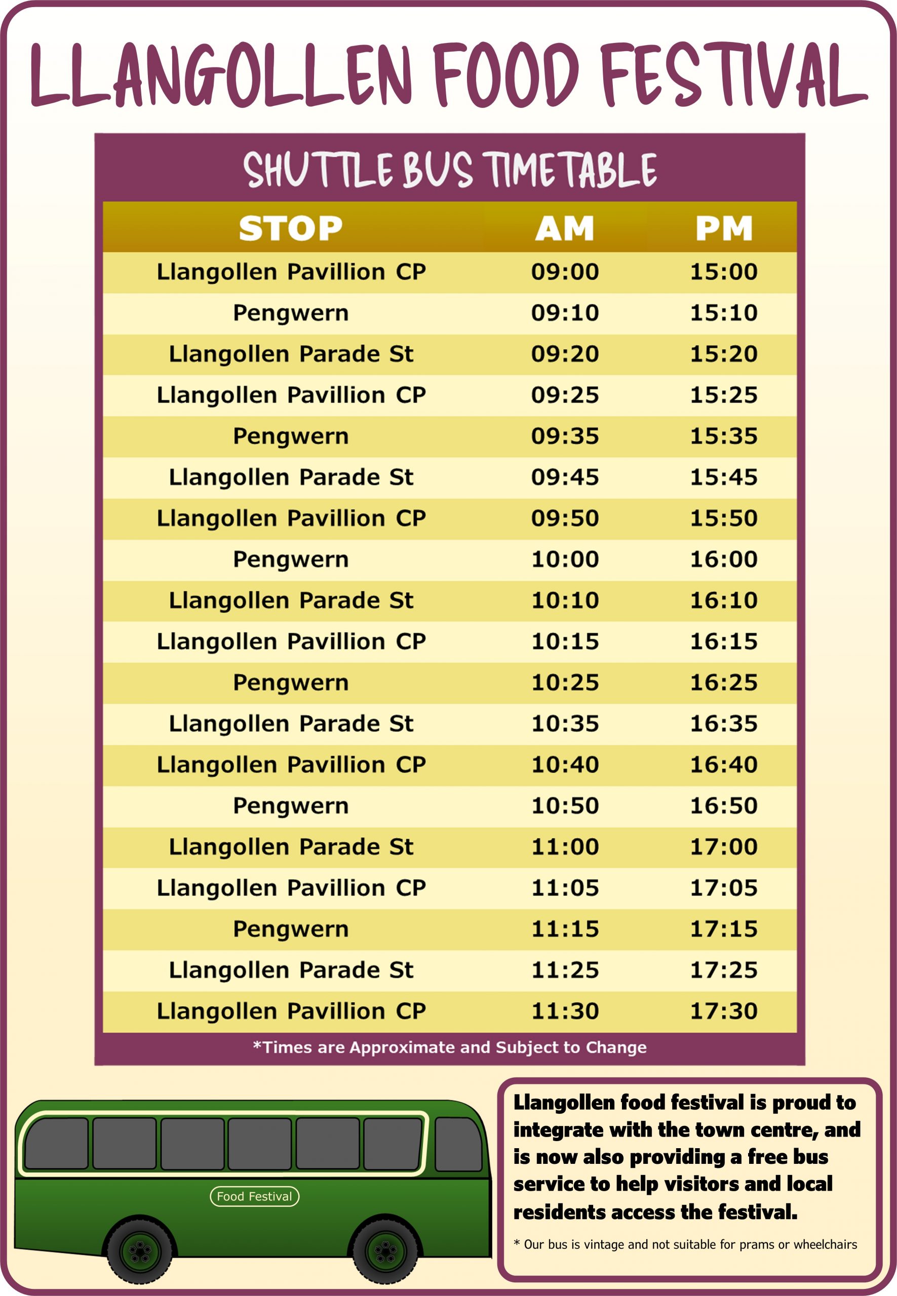 Shuttle service running throughout the day between Pengwern and the Pavilion Car Park.
